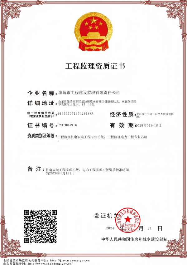 濰坊市工程建設(shè)監(jiān)理有限責(zé)任公司 WEIFANG ENGINEERING CONSTRUCTION OVERSEEING CO.,LTD